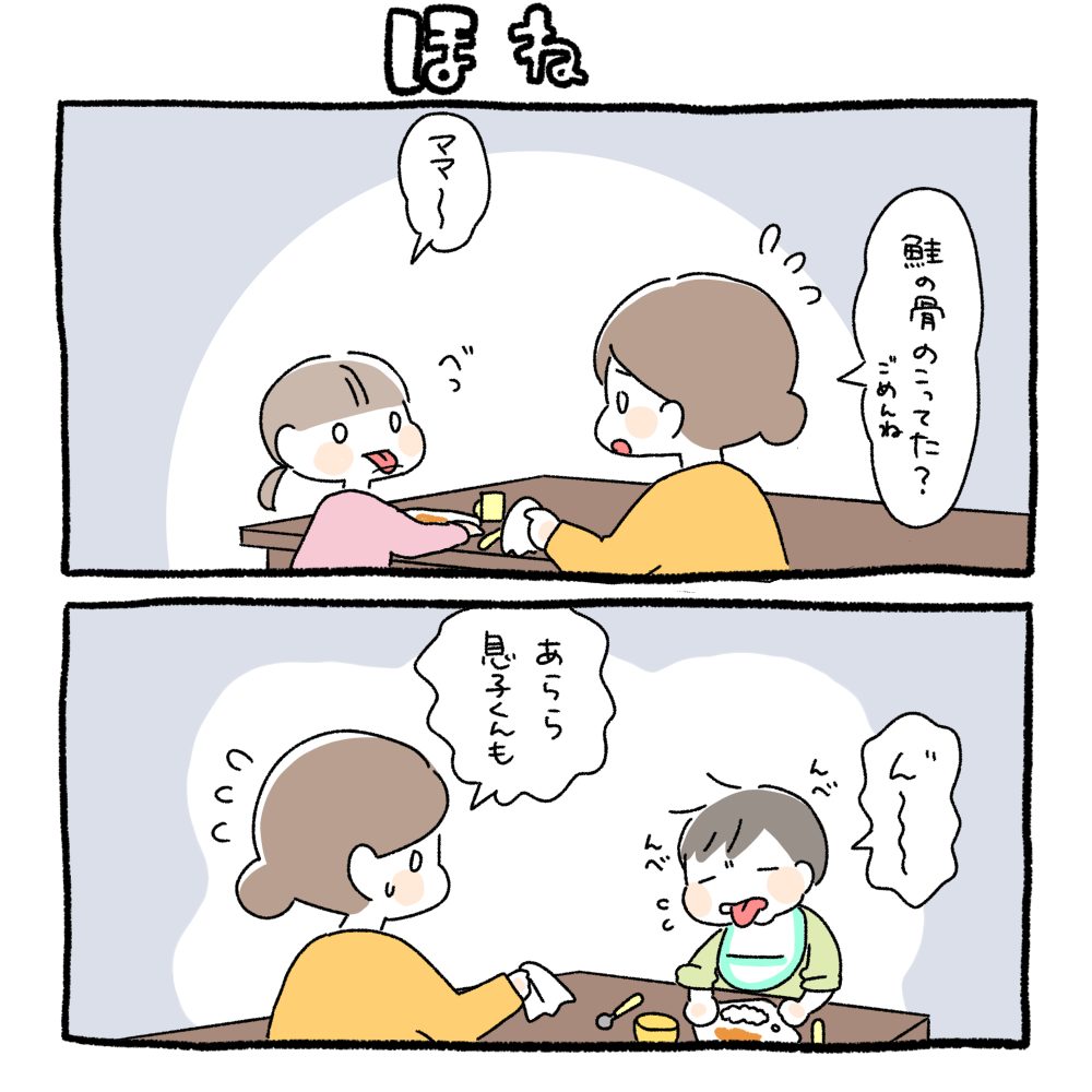 ほね2021.02.09育児あるある 魚の骨なるべく子どもたちには骨抜きの魚とか骨があっても私が取り分けて渡すんですが、時々入ってしまいます。そしてこの前、息子が初めて魚の骨を口にしてしまいました。 あとがき違和感がすごく嫌だったんでしょうね…歯まで嫌がってました😂知らない間に飲み込まなくてよかったです。 4 同じカテゴリの記事 想定していた面倒なことは起こらなかった話 息子の登園ルーティンが変わる時 目を離さなくてもケンカする2人の夕飯での出来事 「ママと話したい」という気持ちは満たされたらしい 大前提のルールをも破る「子どもの理由」 子どもの20分の使い方と親の思い トイレでの返事は気をつけろ クレーンゲームはまだ早い(親の観測的希望) なんとか時間稼ぎをする6歳児と対応する先生 後ろから…不吉な音が…なんだと思います…? 息子くんの小さな出来事(まとめ) 親達は一度はループを経験したことがあるのではないか… うちの5歳児は気にしない 絶対食べたい息子vs食べさせたくない母!勝者は… 姉弟でなんとか9時を10時にした話 息子が小学校行きたくないって言いました(まだ園児なのに) 子どもたち、合いの手を入れることを覚える きっと後で温かくなると思ってる息子くん 子どもに言ったことはたまにブーメランになる 困ったらすぐに百均に駆け込む人(水の単位) 保育園の先生に言いたい!! ひらがなカタカナ漢字を覚える小学生って大変すぎ 暑い夜の温度調節問題 腹痛でしんどかった時に子どもへの対応はこうなりました 能力を開花した息子 腹筋バキバキに憧れる息子の行動がかわいい 子供達は『リスクヘッジ』を覚えた 娘からのメールに喜ぶパパだけど…それ「だいすき」って書いてないよ 娘が新しい家族を連れてきた 娘の衝撃的な言葉、大きくなったな… パパとも秘密を息子にバラされた娘… お布団選手権。きっと私が最小面積だと思う 小学1年生の娘が1人で友達の家に行く話① ガンコ 娘と私と食欲 娘と私と食欲 息子とおひるね 食洗機を買った④ 食洗機を買った③ 食洗機を買った② 食洗機を買った① おなか お知らせ モンスター ねてるまに ひんやり パスタ マスク 息子くん2歳になりました! ハミガキ とりのこえ 洗濯あるある よんだ? いじわる メンバー どっち GW ナンダルンダ ほめる ほしいもの おなかのなか イタズラごころ 主婦の主張 スカートはいたら ラップ ポーズ 初・雪遊び ご飯の行方 視野 バナナがほしい 朝の一コマ 理解 おフロあそび いたいのとんでけ AirPods買いました。 深夜の2人 ハンバーグ 節分 うどん みんなやさしい ほね パパと保育園 並び順 土曜日の8:15頃 はじめましてと家族の紹介 前の記事 パパと保育園 2021.02.08次の記事 みんなやさしい 2021.02.12アプリなら通知ですぐ読める! NAPBIZブログ