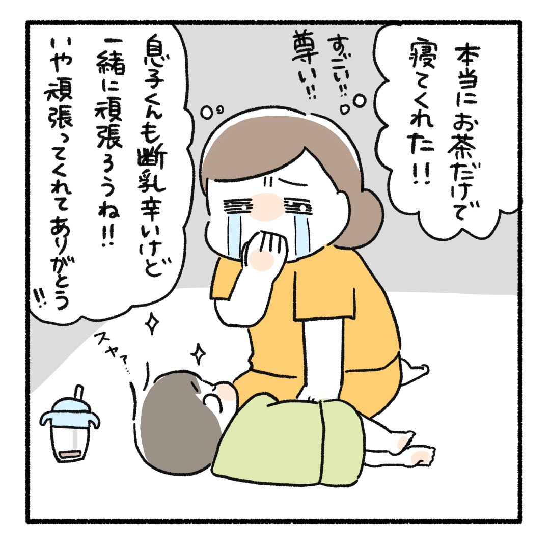 ヒートダウンした息子は返事通りお茶を飲んでおっぱいを要求することなく寝てくれ、この日はそのまま朝まで寝てくれました😭✨