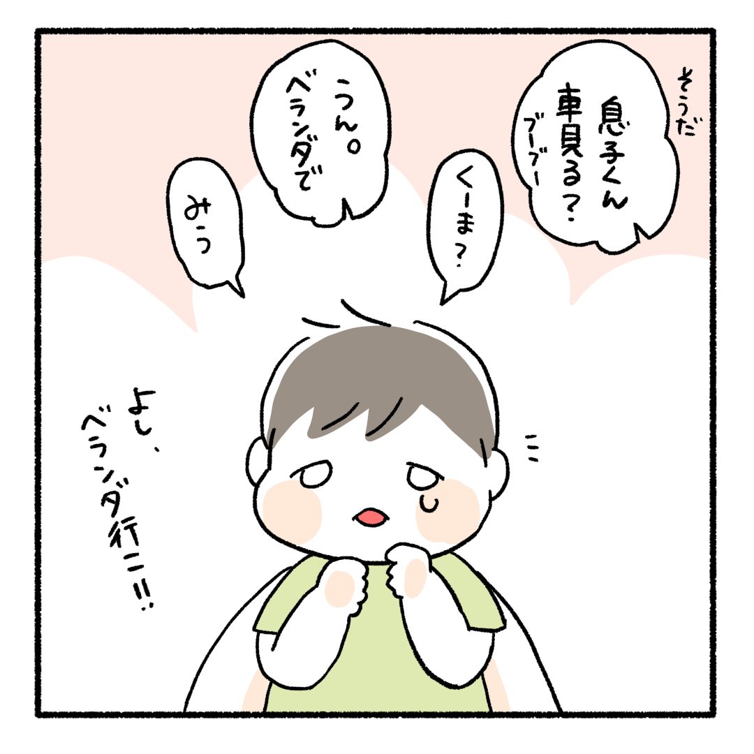 車を見るという提案で泣き止んでくれました!