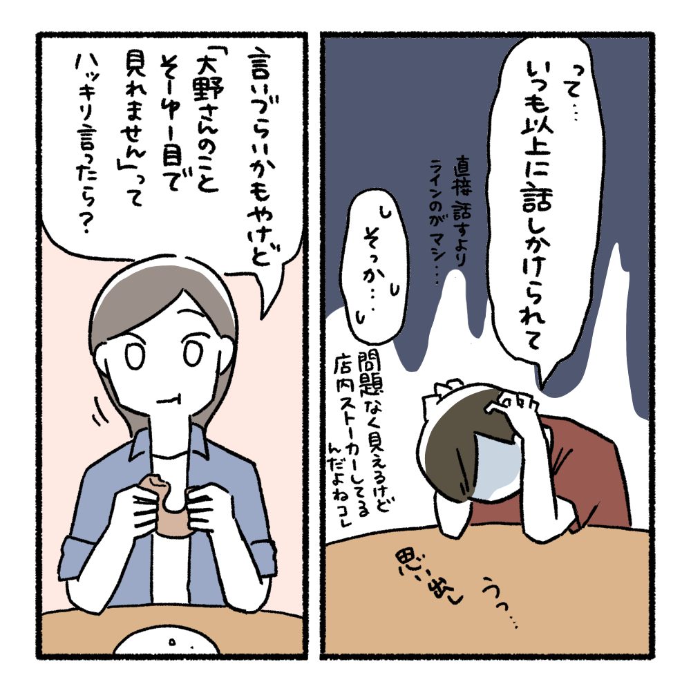 でも大野さんとシフトが被った時、ジーッと見られたり近づいてこられたりして「何されるんだ?!」と冷や汗が出ることも多く、仕事がしづらいく居心地が悪そうでした😭