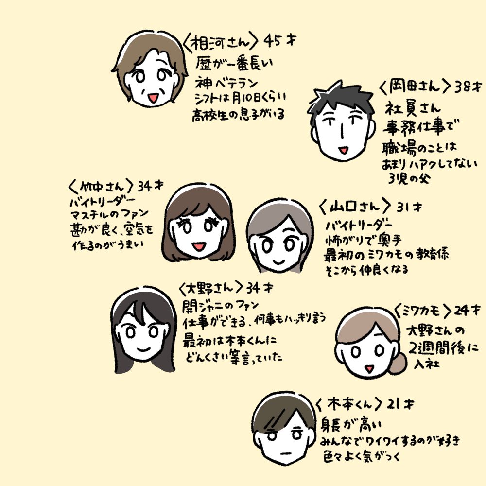 実際は他にもバイトさんが何人かいますが漫画には出てきていません。全員で20人いないくらいだったと思います。