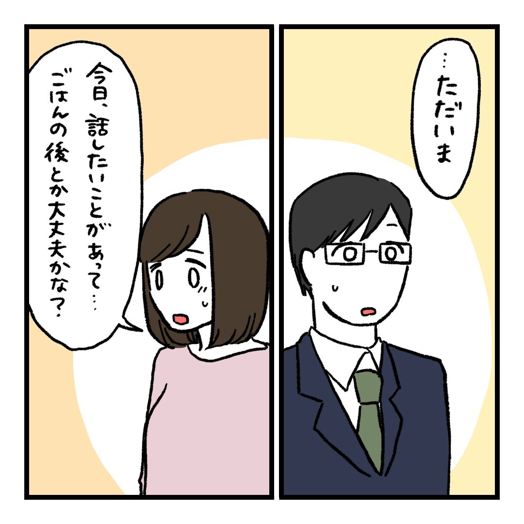 会話レスな夫婦202021.12.08会話レスな夫婦 会話レスな夫婦20前回の話はこちら⇨会話レスな夫婦19 広告 あとがき更新かなり開きました!すみません。いつも行き当たりばったりで描いて終わっているので今回はしっかり納得のいく終わりかたにしたいなと思って悩んでいました。残り10話ないくらいです!よろしければ最後までお付き合いください!!____________ちなみにドアを開けた時のヒトシさん続きはこちら会話レスな夫婦21 0 同じカテゴリの記事 カモられた話27 会話レスな夫婦28(最終話) 会話レスな夫婦27 会話レスな夫婦26 会話レスな夫婦25 会話レスな夫婦24 会話レスな夫婦23 会話レスな夫婦22 会話レスな夫婦21 会話レスな夫婦20 会話レスな夫婦19 会話レスな夫婦18 会話レスな夫婦17 会話レスな夫婦16 会話レスな夫婦15 会話レスな夫婦14 会話レスな夫婦13 会話レスな夫婦12 会話レスな夫婦11 会話レスな夫婦10 会話レスな夫婦9 会話レスな夫婦8 会話レスな夫婦7 会話レスな夫婦6 会話レスな夫婦5 会話レスな夫婦4 会話レスな夫婦3 会話レスな夫婦2 会話レスな夫婦1 前の記事 会話レスな夫婦19 2021.11.30次の記事 会話レスな夫婦21 2021.12.13アプリなら通知ですぐ読める! NAPBIZブログ