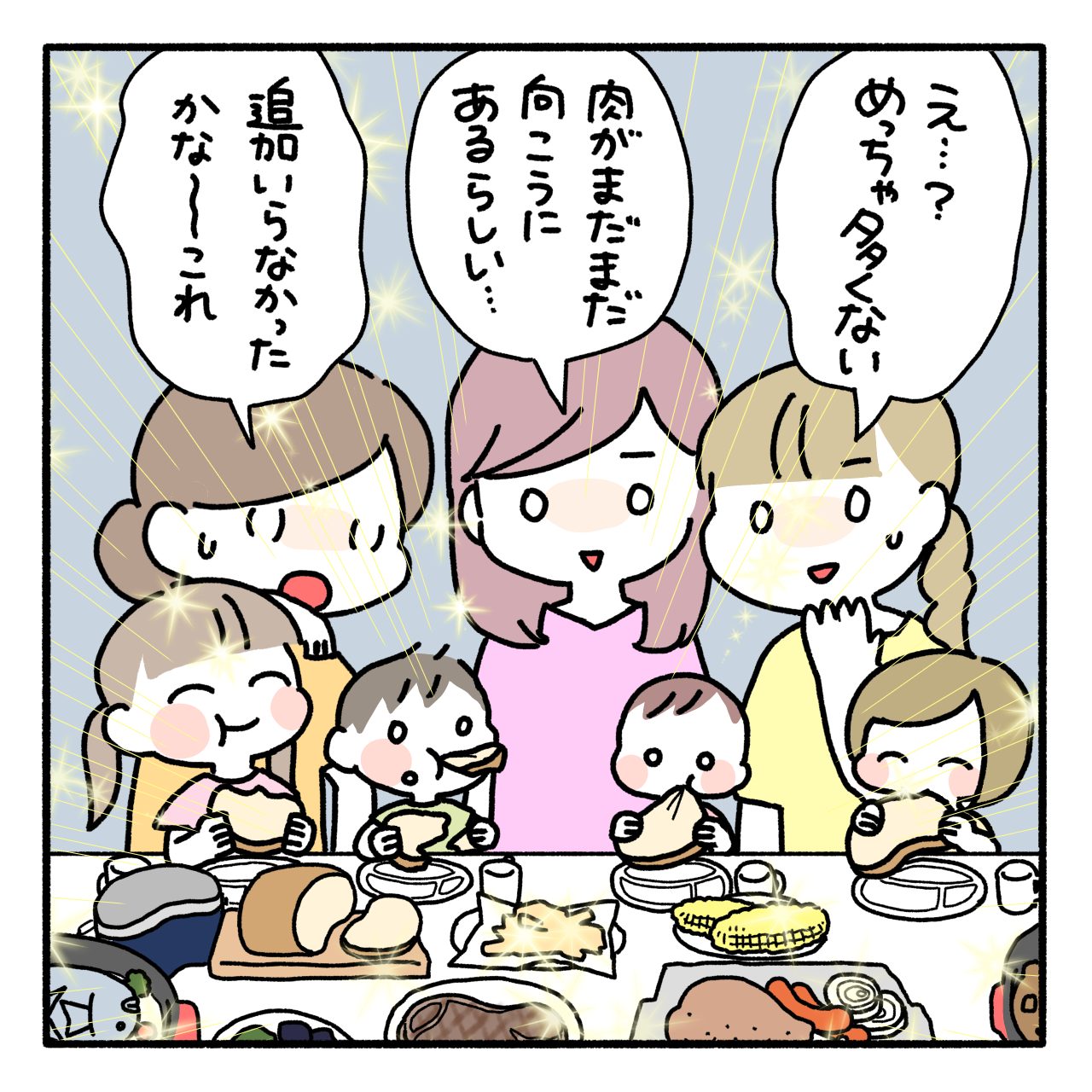 (朝は子ども用に牛乳パックやスティックパンを少し買いました)