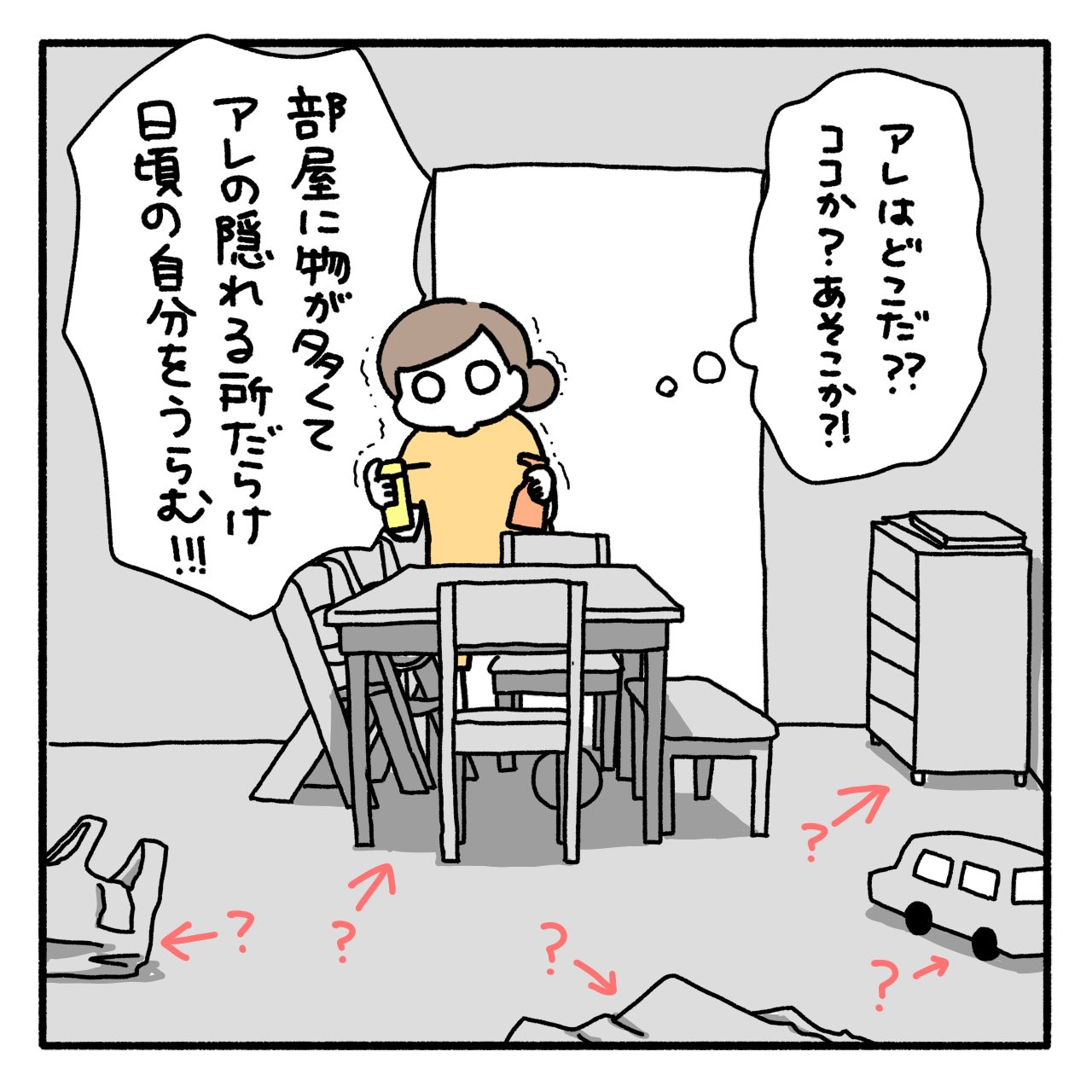 なので殺虫剤も何にも対策グッズがなく、自分で戦いに行くのも嫌で、「これは詰んだ…」と思ったのですが、なんとかただの殺虫剤(アレは殺せるかわからない)を見つけていざ戦いに行きました!!!