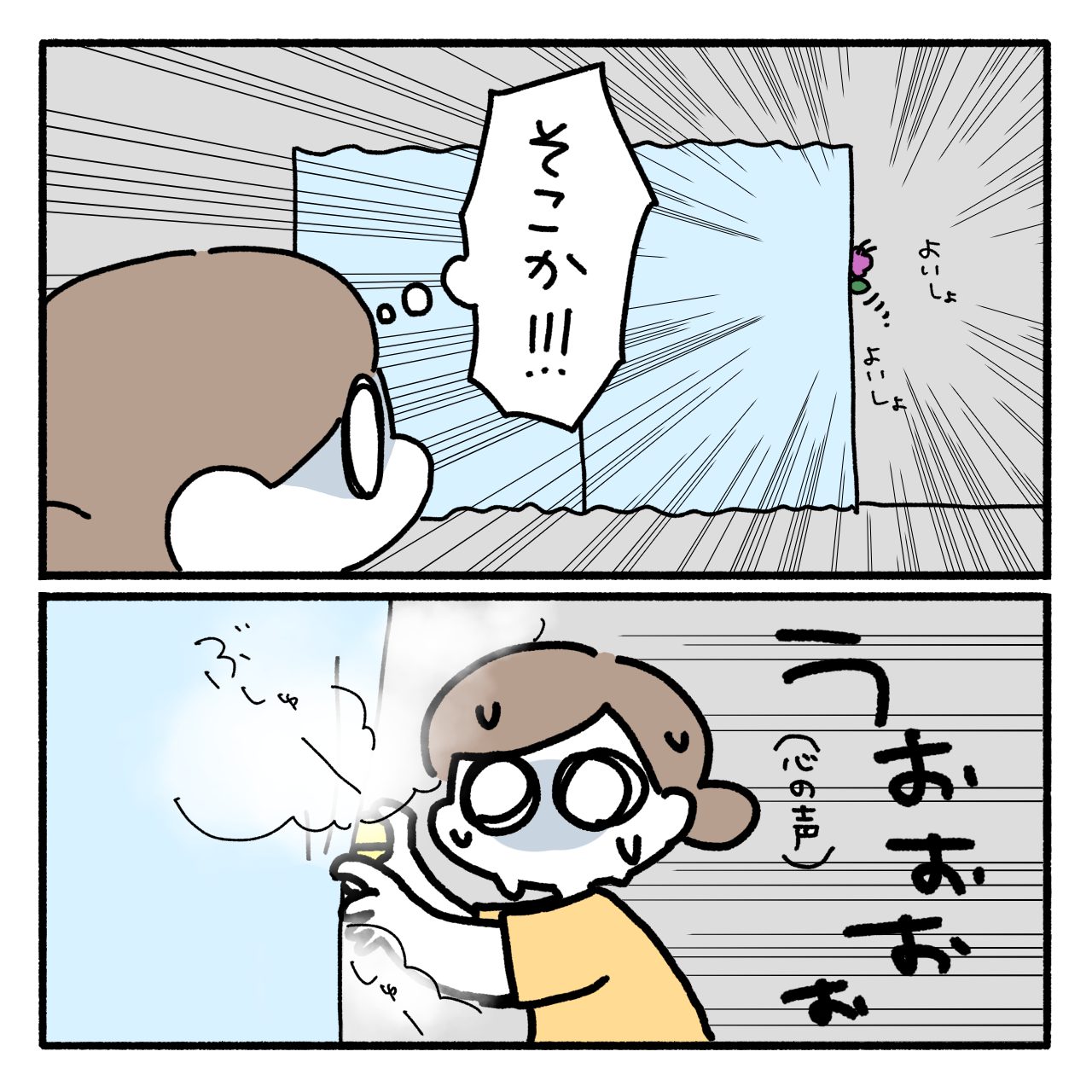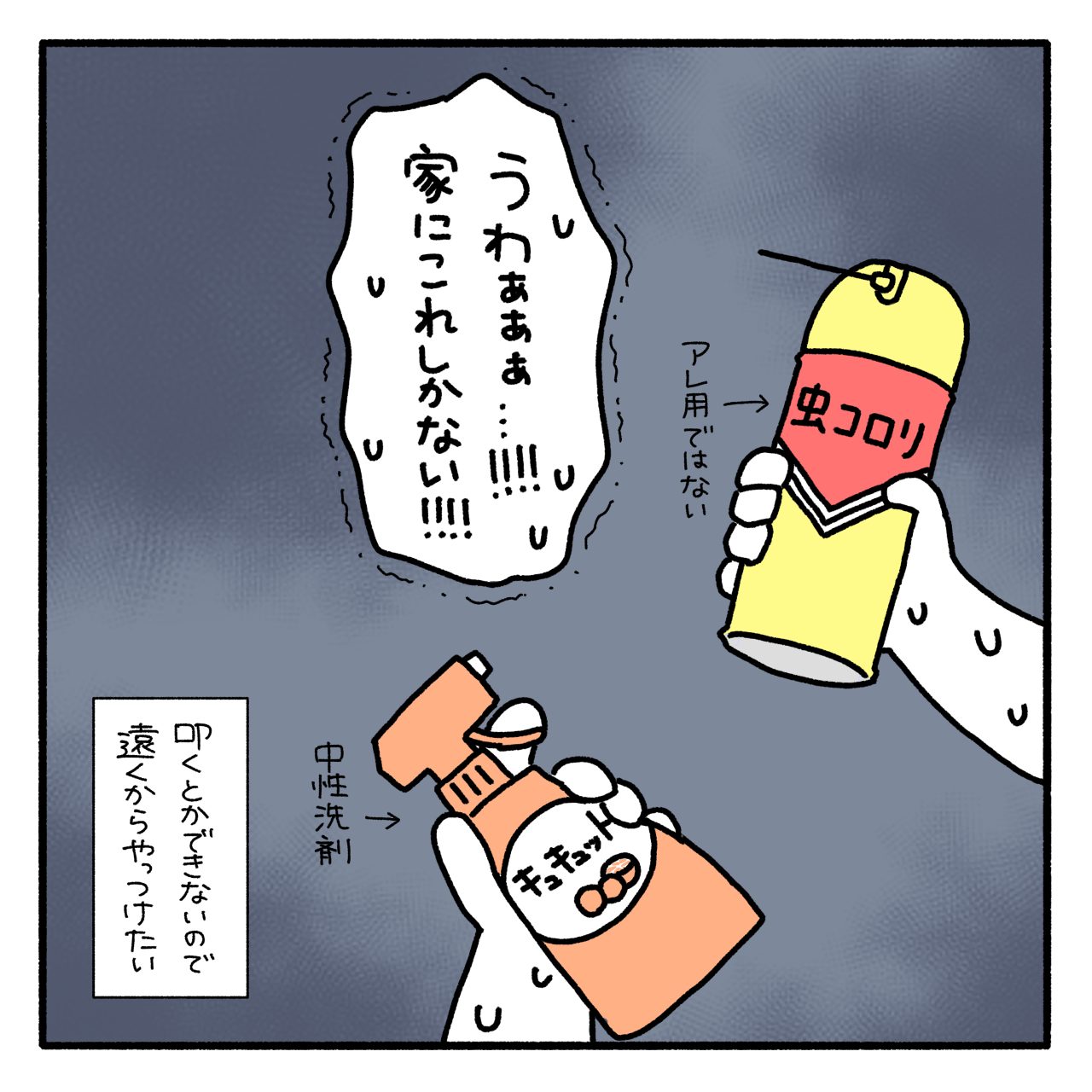 追いかけて殺虫剤を吹きかけ!すぐさま寝室に戻ります!!