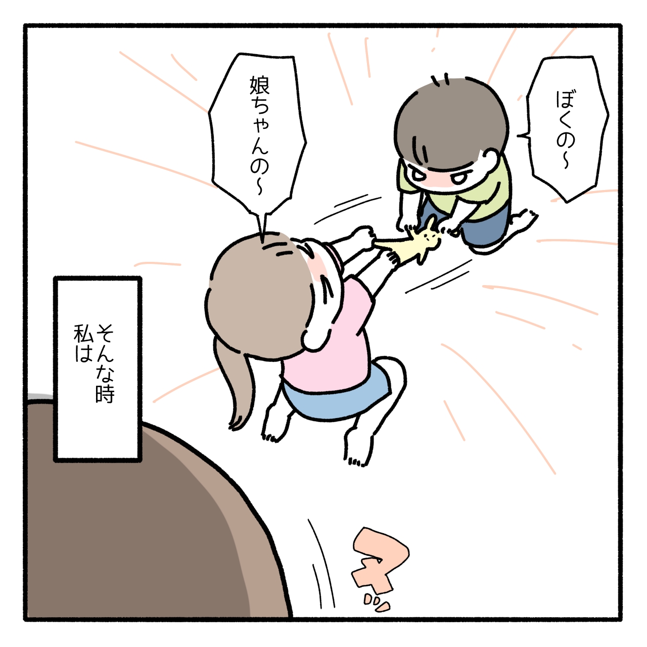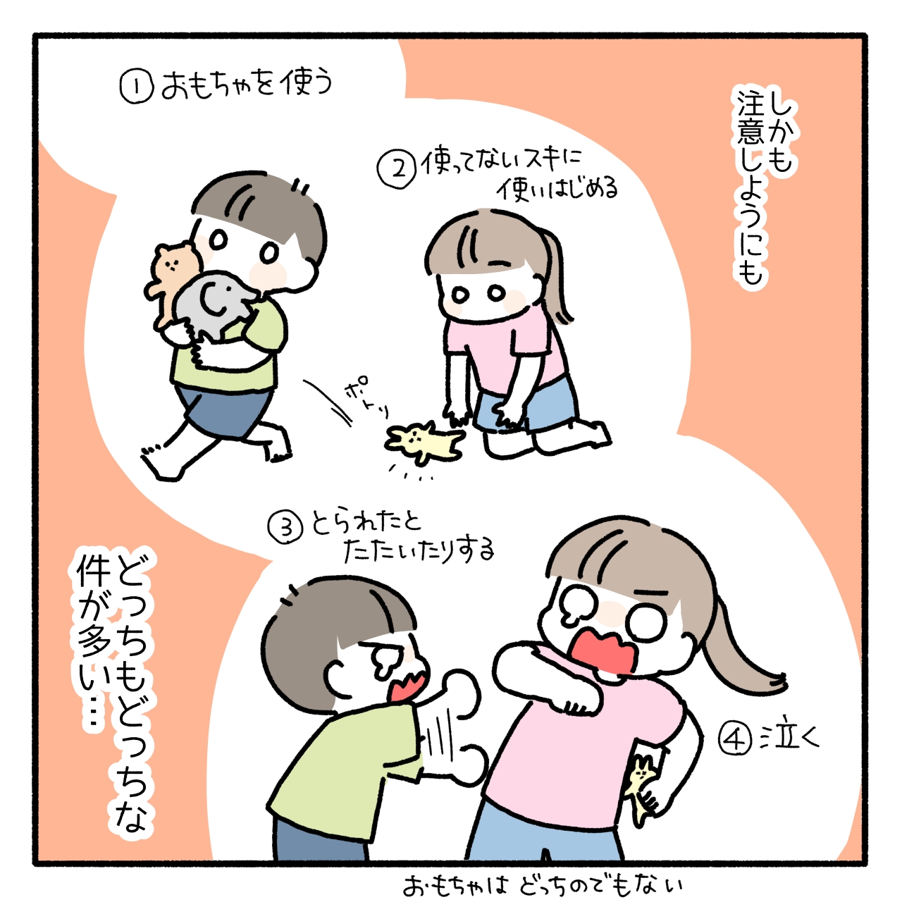 まぁ娘ちゃんは叩くことはないんですけど、明らか息子くんが使ってるおもちゃをそ〜っと取ったりすることもあって…どっちもどっちやん!仲裁するのめんど!!