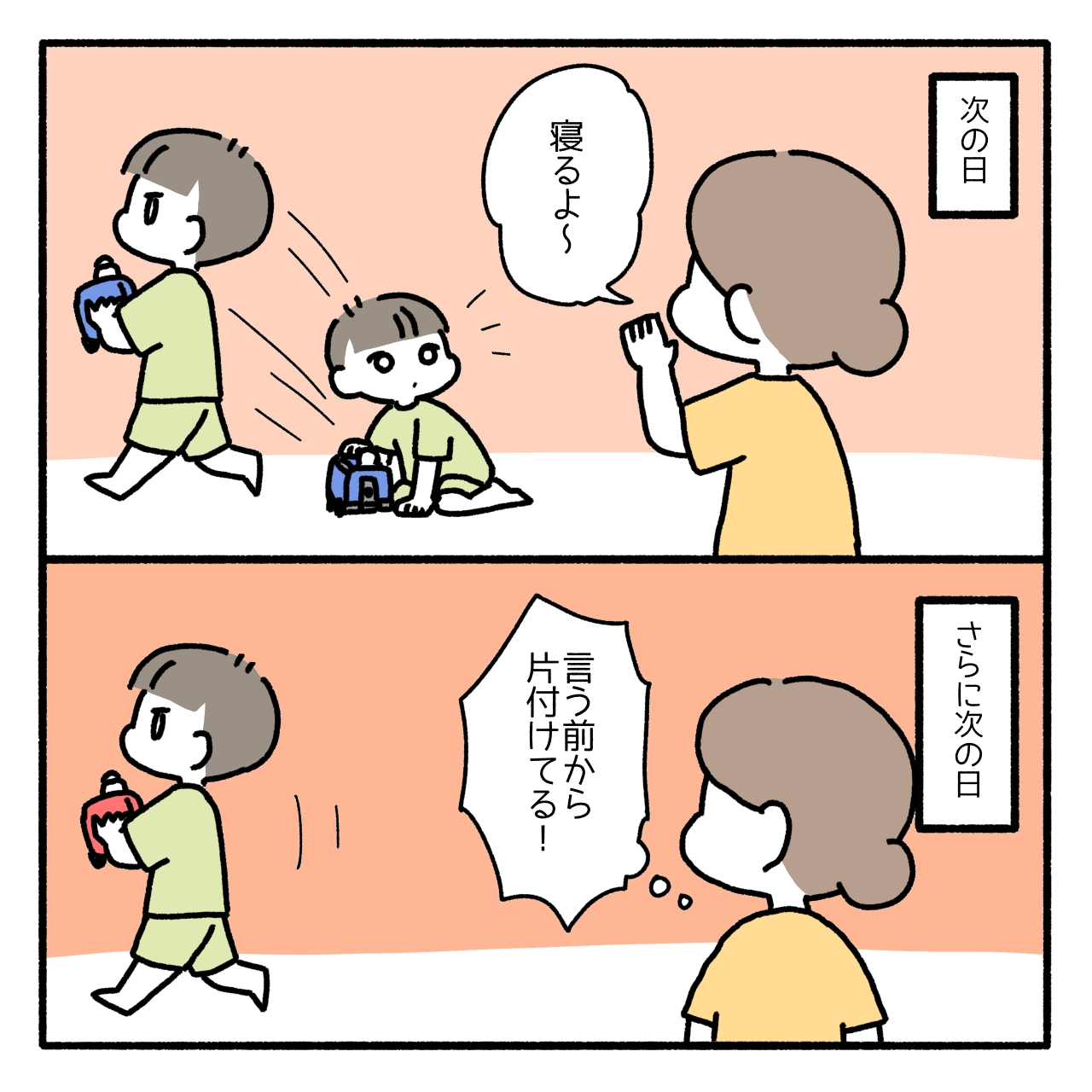 お片付けしようね〜と言ってもなかなかしなかったのに