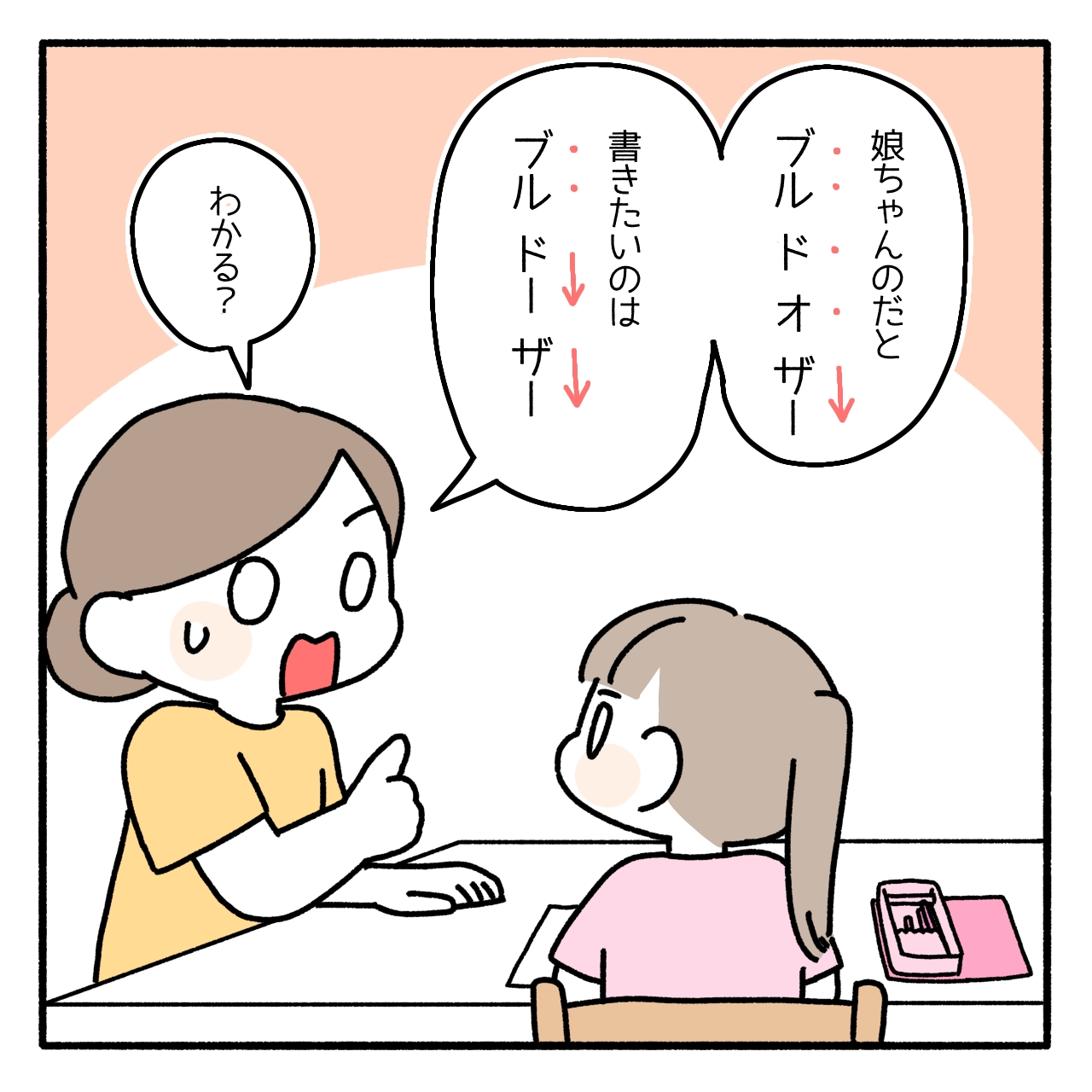 ブルドーザーをゆっくり丁寧に言うと『 ブ ル ド オ ザ ア 』になってしまうので