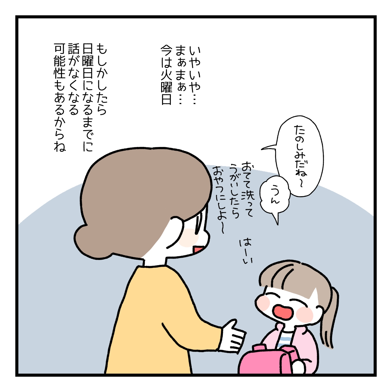 でも子供が保育園だった頃は「友達と約束するのが楽しい」って感じだったのに、成長して小学生になったら「約束は守るもの」という感じでちゃんと覚えてるんですね〜いつもの感じで忘れると思ってたのでちょっと成長を感じました