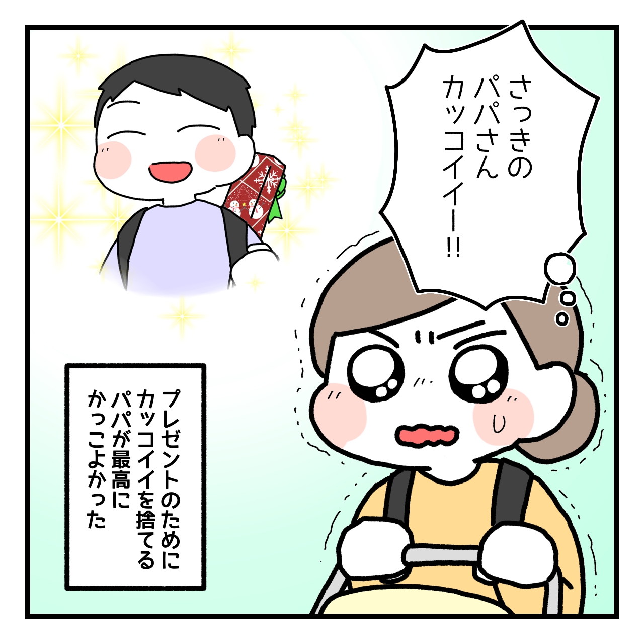 子供のプレゼントを綺麗に持って帰れるなら、自分が「カッコ悪い」と見られても問題ないと思ってるってことですもんね。絶対子供も嬉しかったと思います。