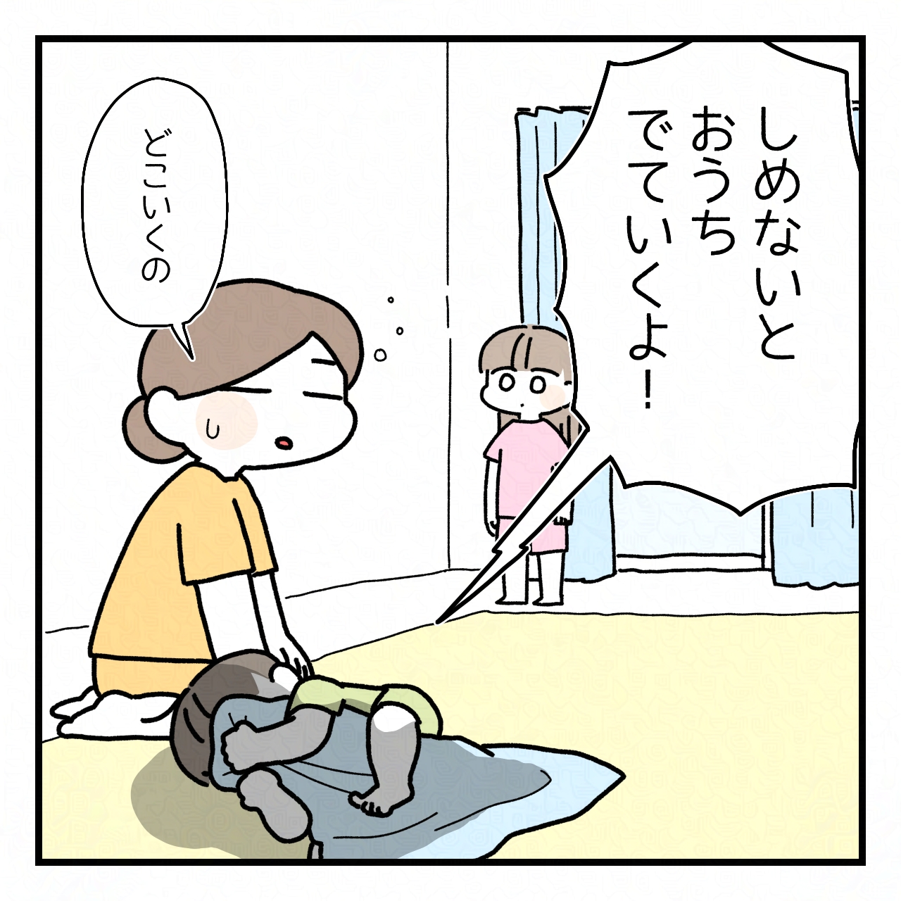 「カーテン閉めないと他のお家に行っちゃうよ!!」
