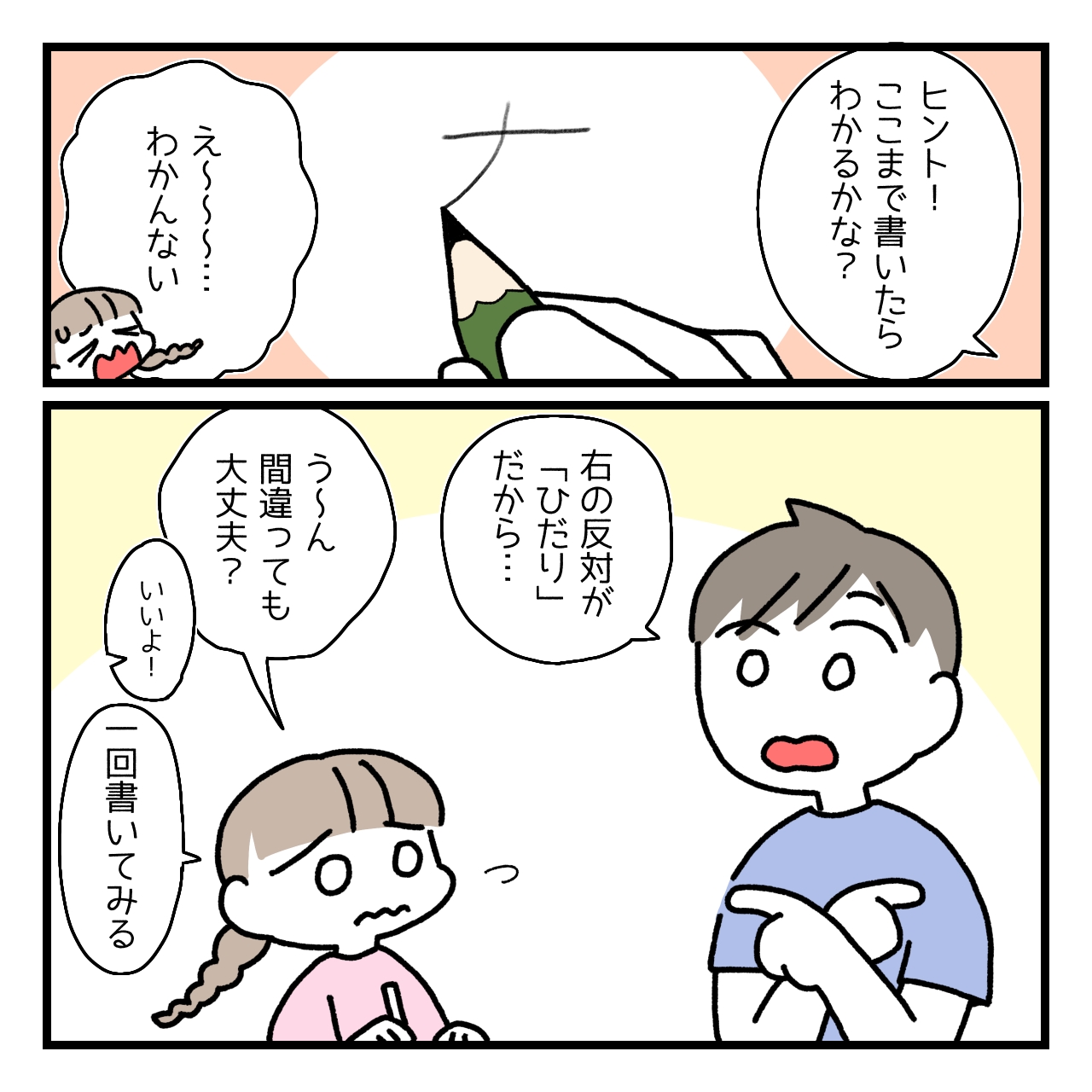 間違えてもいいんだよ〜とか、わからなくても大丈夫だよとか声掛けするんですが、あんまり本人に響いてなさそうなんですよね〜難しいですね。