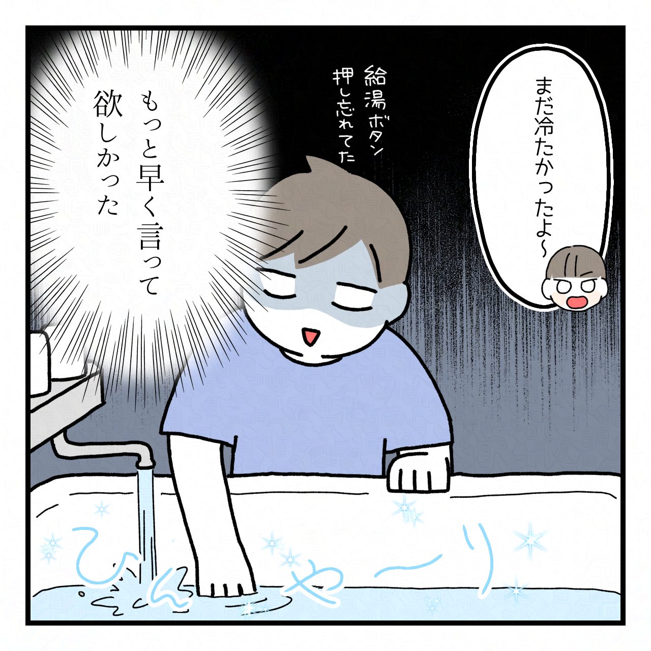 息子くんは水を溜めて、その後水が温かくなると思ったんでしょうかね?