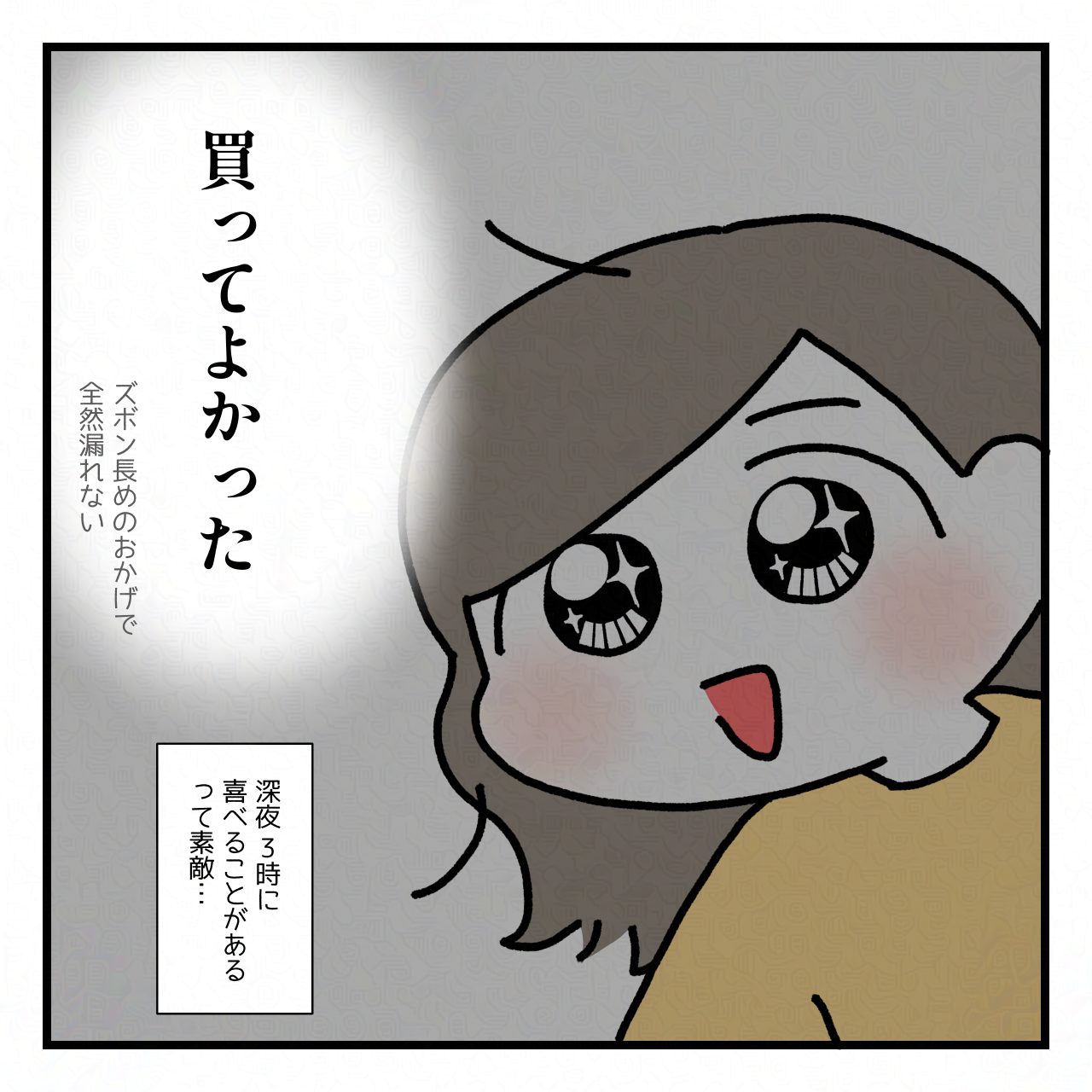 ちょっと長めかも?と思ったんですど、その長さのおかげでおねしょが布団に漏れることはありませんでした!(一回だけお茶たくさん飲んで寝た日は漏れたことがありました!それだけです!)