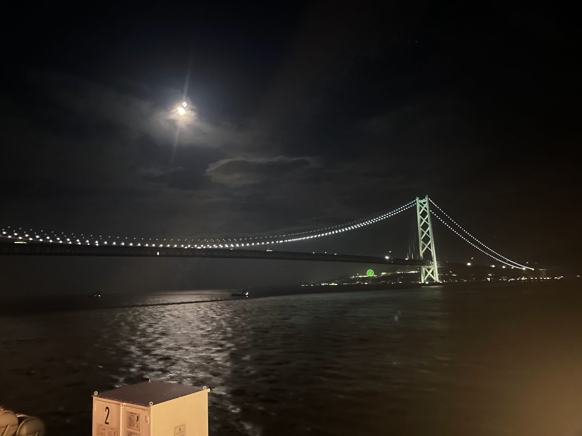 他にも瀬戸大橋、来島海峡大橋の下も通るのですが遅い時間で通るのでまだ見たことないんですよね